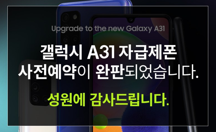 삼성전자에서 준비한 갤럭시 A31 사전예약 판매 물량은 27일 하루만에 모두 소진되었다.