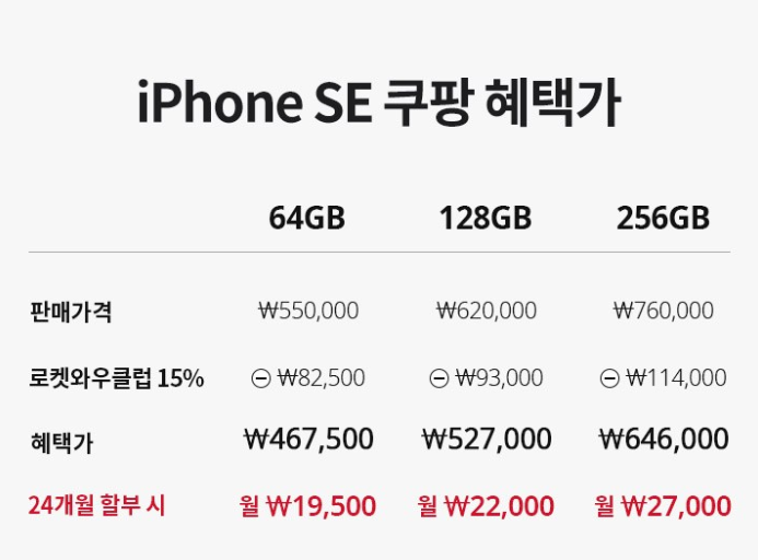 - 현재 쿠팡 사전예약 아이폰 SE2는 64GB만 주문 가능함.