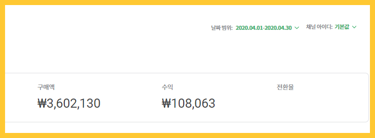일단, 결론부터 말씀드리자면 4월1일부터 4월30일까지 쿠팡파트너스 온라인부업으로 벌어들인 수익은 총 10만8천원 정도 입니다.