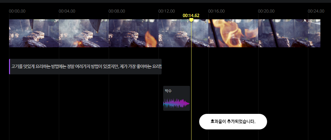하단 타임바를 효과음이 추가되길 원하는 원하는 위치에 위치시키고,