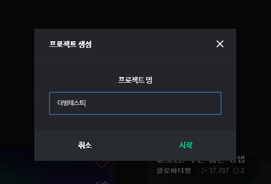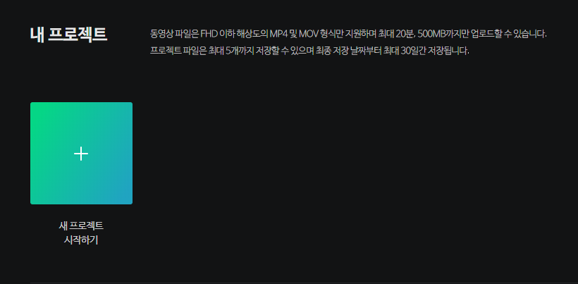 이용약관에 동의를 하고, 시작하기를 누르면 새 프로젝트를 만들 수 있다.