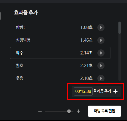 효과음 추가 버튼을 눌러 효과음을 추가하자.