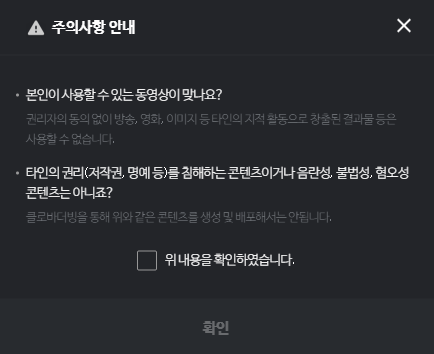 주의사항을 확인 후, 동영상이 업로드 되었고 아래창에 내가 불러온 동영상이 표시되었다.