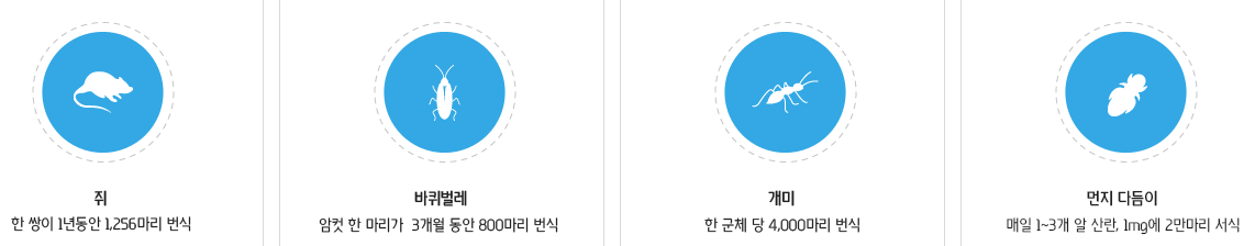 쥐, 바퀴벌레, 개미, 먼지 다듬이 등 4종류의 대표적인 가정집 실내 서식이 가능한 해충에 대해서 케어를 해주는 프로그램이다.