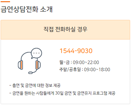 또한 보건소에 방문하기가 부담스럽다면, 금연상담전화라는 프로그램도 있다.