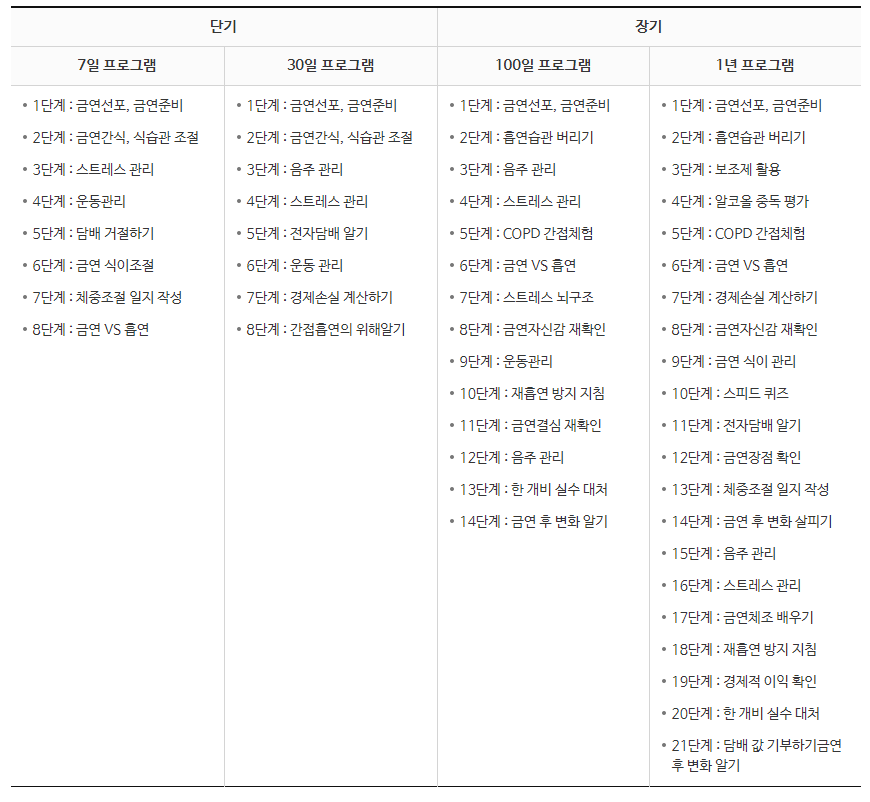 이 프로그램은 단기, 장기프로그램 두가지로 나뉘어 금연 프로그램을 진행하는데,