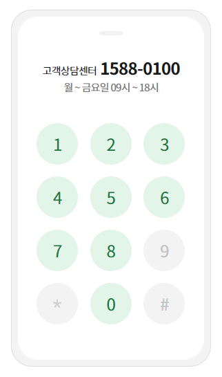 왠만하면 고객센터 대표번호인 1588-0100 으로 커버가 되지만, 좀 더 빠르게 고객센터에 연결하고 싶으실때에는 위의 전화번호들을 사용하시면 됩니다.