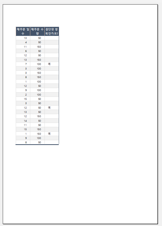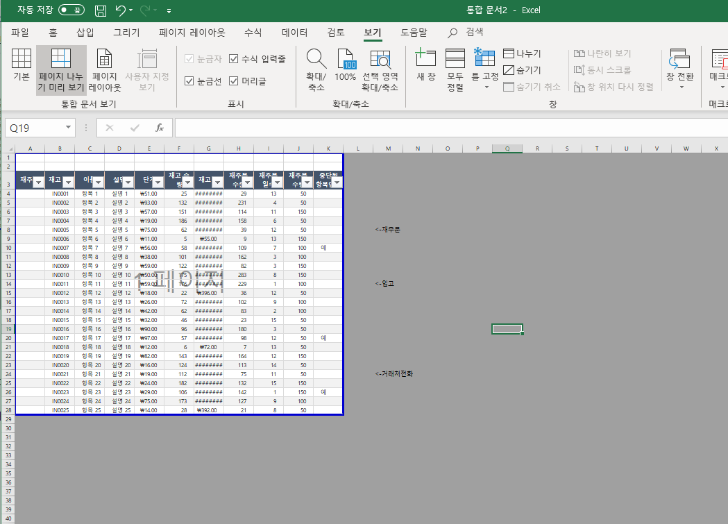 한페이지짜리 도표가 인쇄영역 설정이 잘못되어 두개로 나누어지는 신기한 현상(?)을 볼 수 있겠습니다.