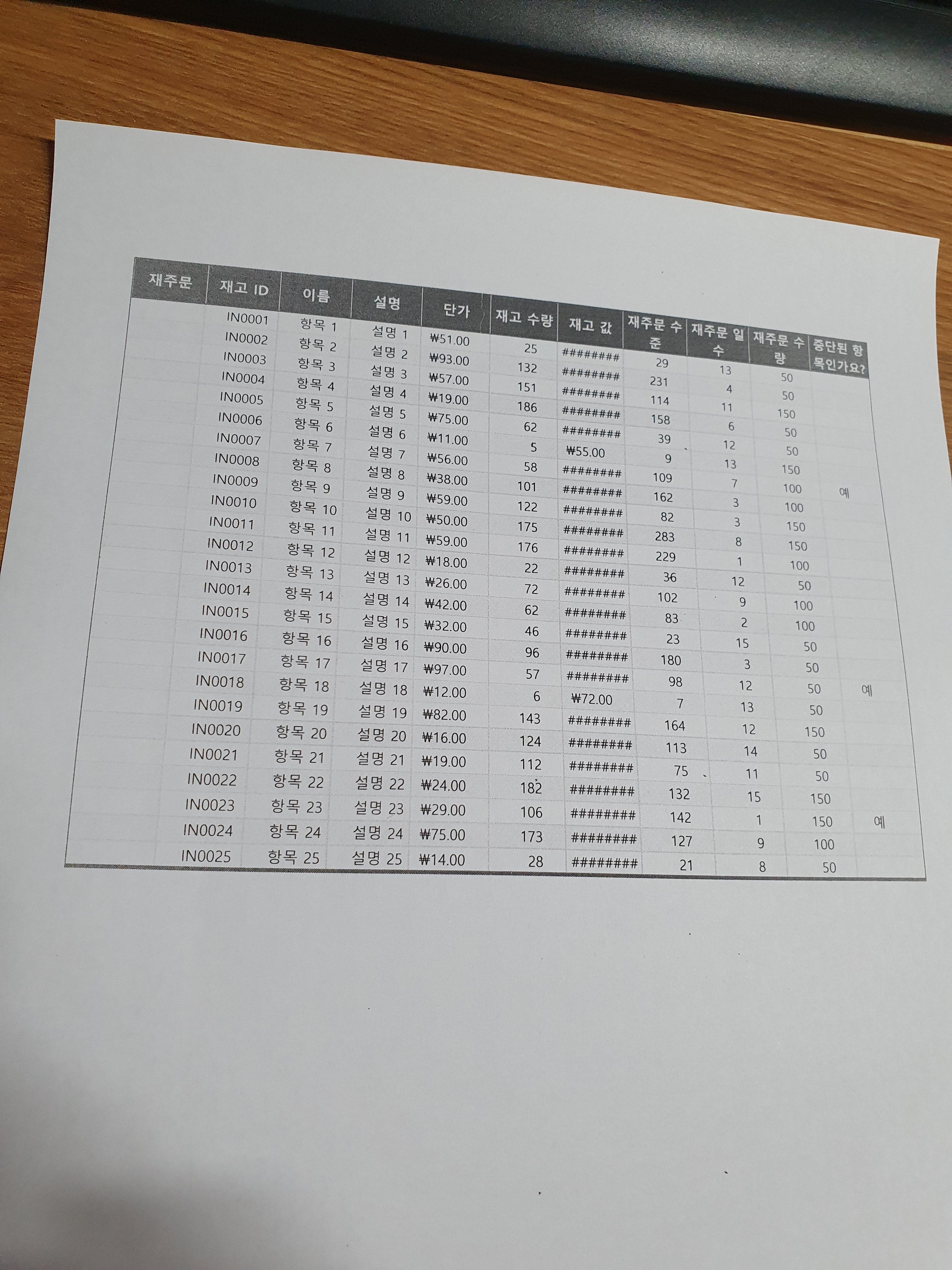 엑셀 초보가 작업해서 프린팅한 출력물 치고는, 그래도 볼만한 수준입니다.
