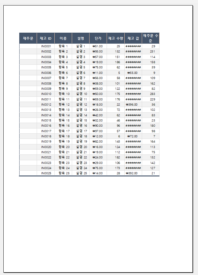 한페이지짜리 도표가 인쇄영역 설정이 잘못되어 두개로 나누어지는 신기한 현상(?)을 볼 수 있겠습니다.