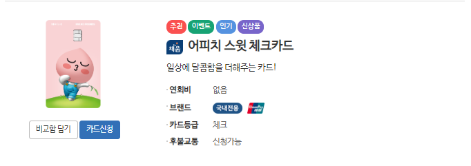 귀염뽀짝 라이언 치즈 체크카드, 어피치 스윗 체크카드
