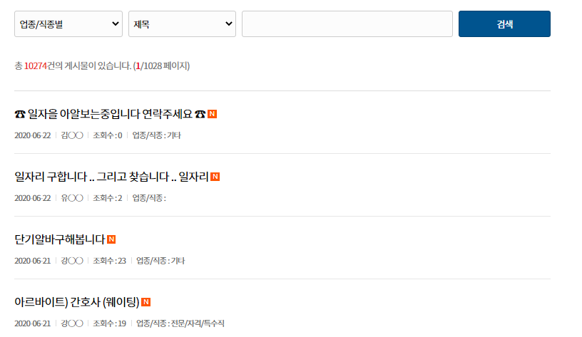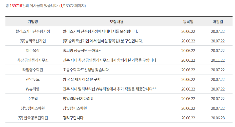 다만, 단기아르바이트, 시간제 파트타임잡을 구하는 구직글들이 주로 올라오고 있어, 정규직 일자리를 원하는 분들은 진주시 일자리 지원센터를 통해 정규직 일자리를 알아보는 취업활동을 하시는게 좋을 듯 합니다.