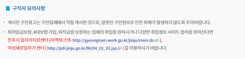 진주시청 구인구직 사이트 주의사항