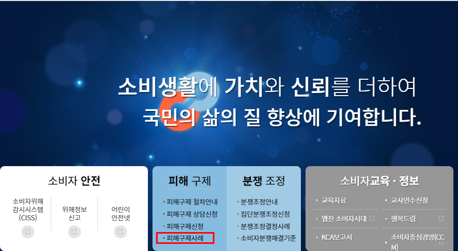 소비자보호원의 피해구제사례를 살펴보고 나의 분쟁상황과 비교해본다면 피해구제를 받을 수 있을지 없을지 확인할 수 있습니다.