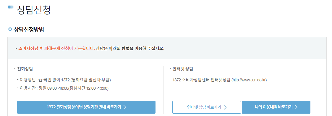 오프라인에서, 혹은 온라인 쇼핑몰에서 물품을 구매한 후, 환불이 되지 않아 골머리를 썪고 계신 분들이라면 피해구제신청 및 피해구제사례를 살펴볼 수 있겠지만 인터넷을 통해 상담신청을 하시면 본인의 상황과 분쟁상황을 설명 후 쉽게 피해구제신청을 할 수 있습니다.
