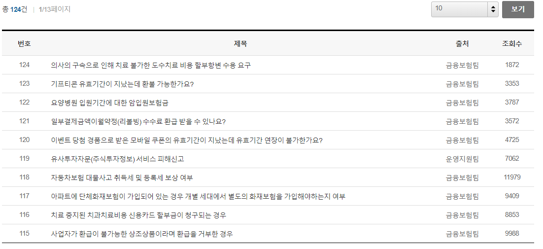 특히, 신용카드 리볼빙이나 유사투자자문, 주식투자정보 및 자동차보험 대물사고 취득세, 등록세 보상 여부, 사업자 환급 거부나 아파트의 화재보험 가입이 필수인지 여부 등 일반인이 알기에 까다로운 정보들이 많이 있습니다.