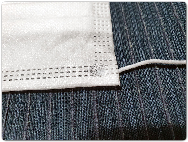 덴탈마스크 앞 뒤를 구분하려면, 고무줄의 접합부위를 살펴보자.