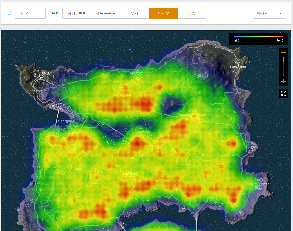 모든맵의 지도와, 차량/보트, 착륙 분포도, 무기, 자기장 등의 정보를 볼 수 있습니다.