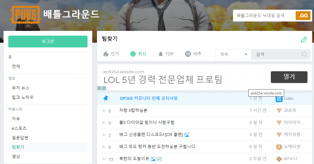 오피지지는, 리그오브레전드의 전적검색 사이트로 흔히 알고계시겠지만, 배틀 그라운드의 전전검색 서비스도 같이 하고 있습니다.