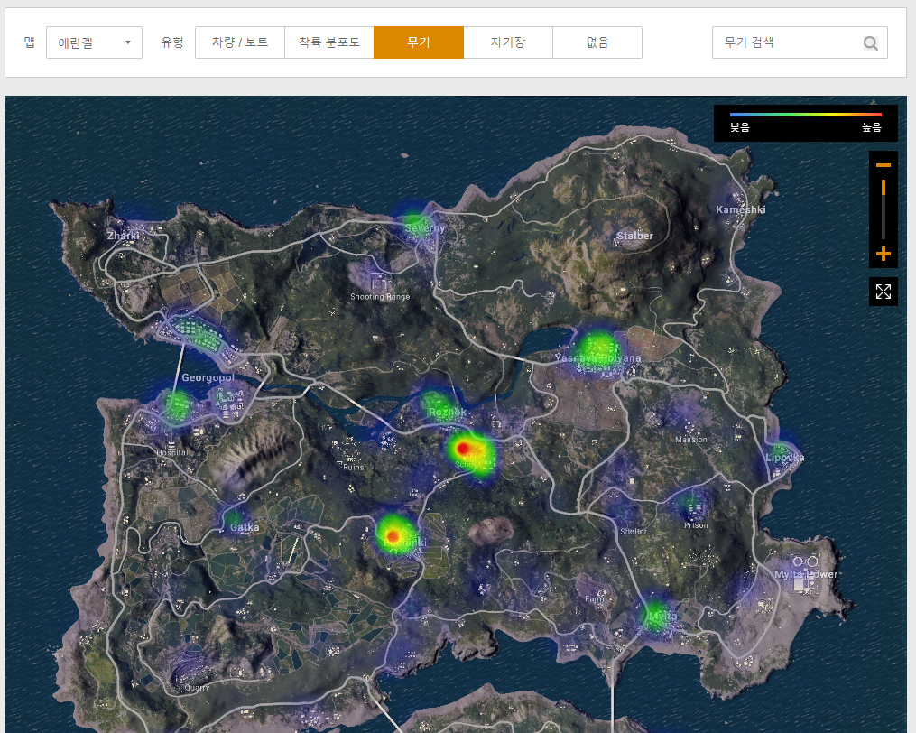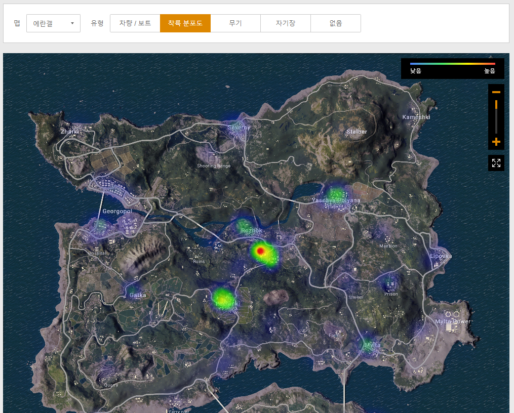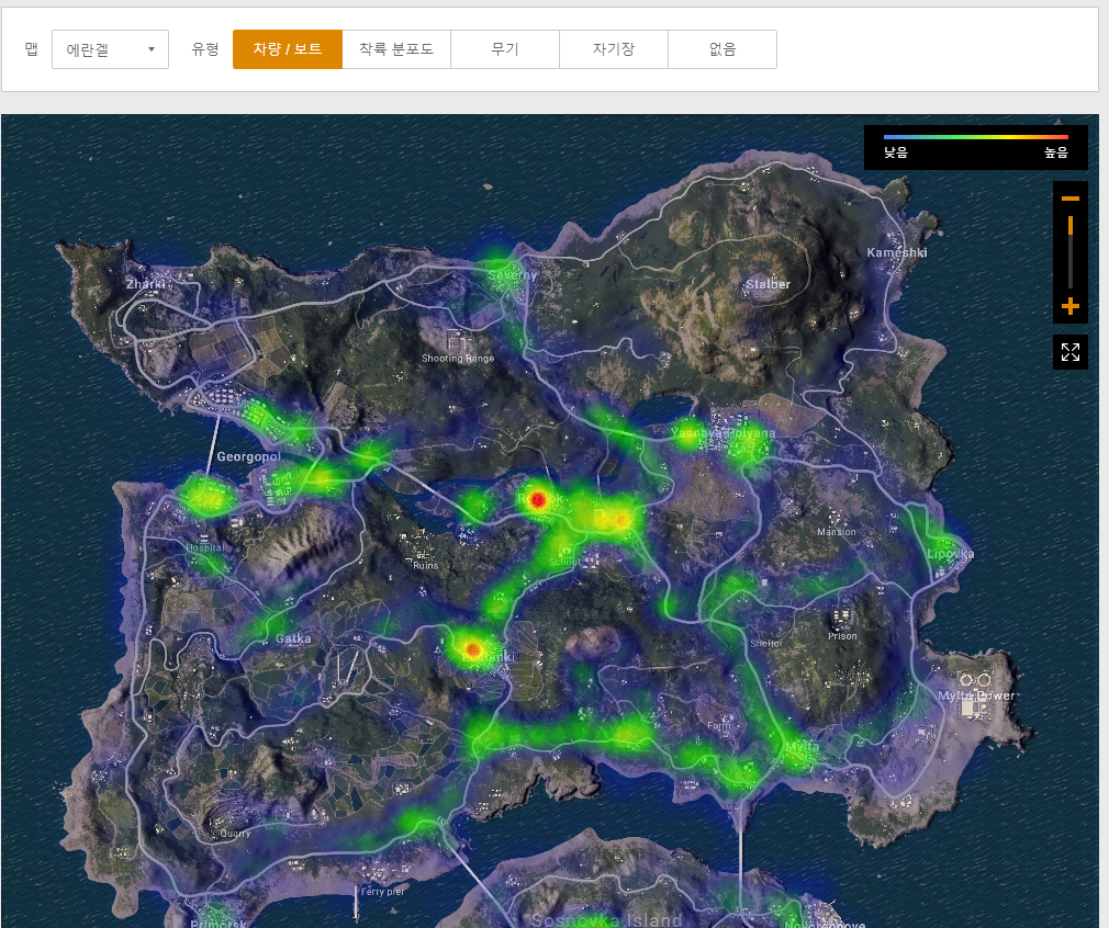 모든맵의 지도와, 차량/보트, 착륙 분포도, 무기, 자기장 등의 정보를 볼 수 있습니다.