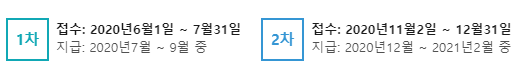 다만, 2020년 1차 신청기간은 6월 1일 월요일부터 ~ 7월 31일 금요일 18:00시 까지 신청을 받습니다.