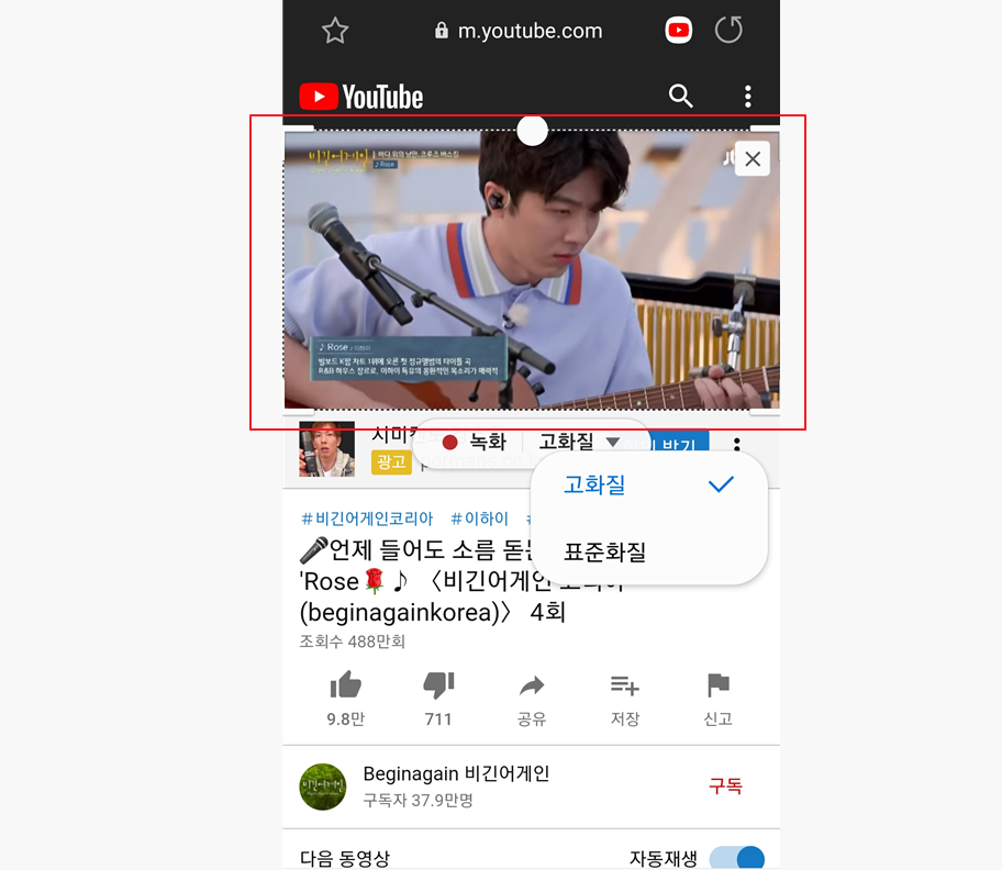 스마트 셀렉트에서 GIF 를 누르면 위와같이 네모박스가 나타납니다. 녹화를 원하는 동영상을 재생시켜둔 후, 스마트 셀렉트 GIF 캡쳐툴을 열어주고 영역을 선택 후, 화질을 선택해주면 간단하게 GIF 동영상 움짤을 만들 준비가 되었습니다.
