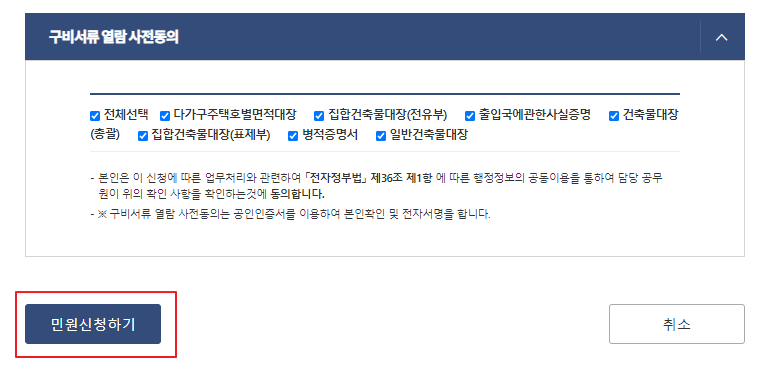 모든 사항을 입력 후, '민원신청하기' 버튼을 클릭하시면 정부24를 통한 세대분리 민원신청이 빠르게 완료됩니다.