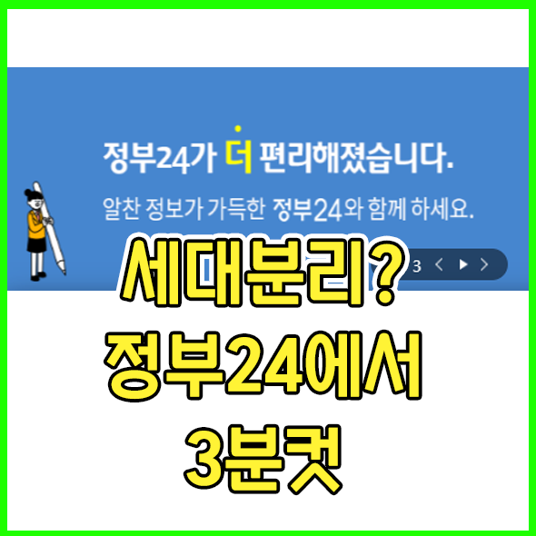 오늘 포스팅에서는 온라인으로 단 몇분만에 쉽게 정부24 홈페이지에 접속해서 세대분리를 하는 방법에 대해서 포스팅하도록 하겠습니다.