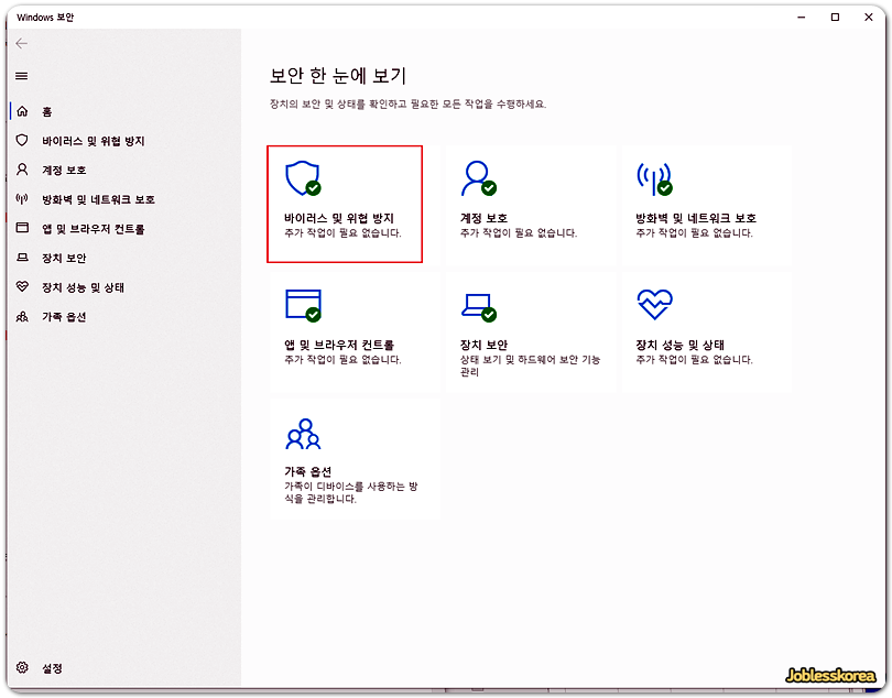 바이러스 및 위협방지 아이콘을 선택하겠습니다.