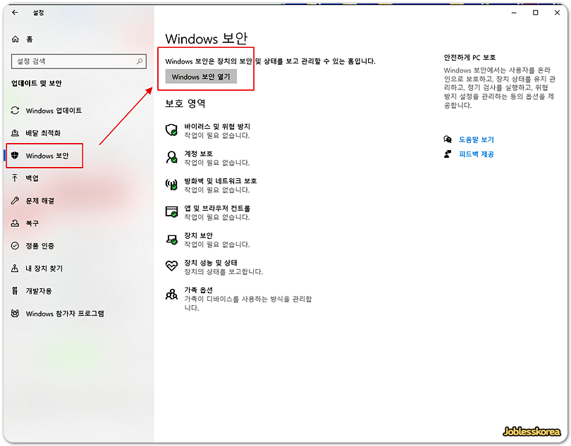 윈도우 보안 메뉴입니다.