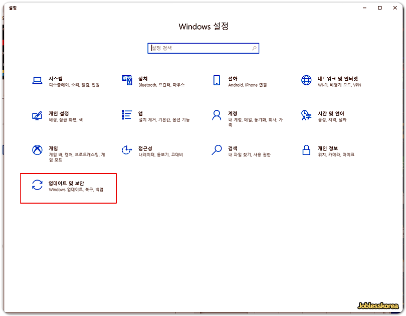 업데이트 및 보안을 눌러줍니다.