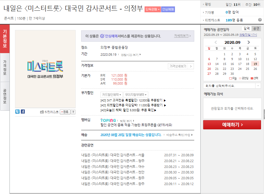 미스터트롯 콘서트 예매는 어디서?