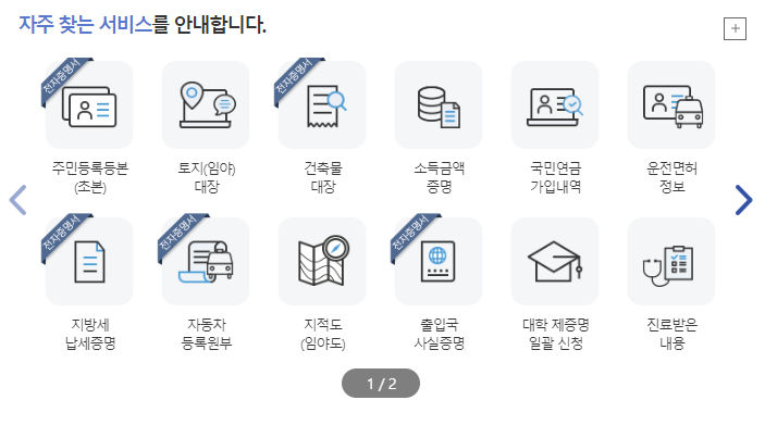기존 민원24보다 좀 더 깔끔하고 세련된 모습으로 바뀐듯 합니다!
