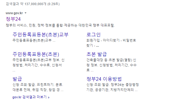 그러면, 맨 윗 상단에 정부24 홈페이지가 나올텐데 홈페이지를 클릭해서 들어갑니다.
