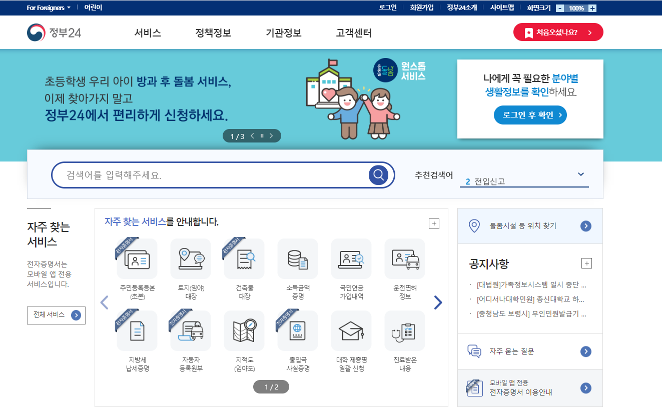 정부24의 홈페이지 입니다.