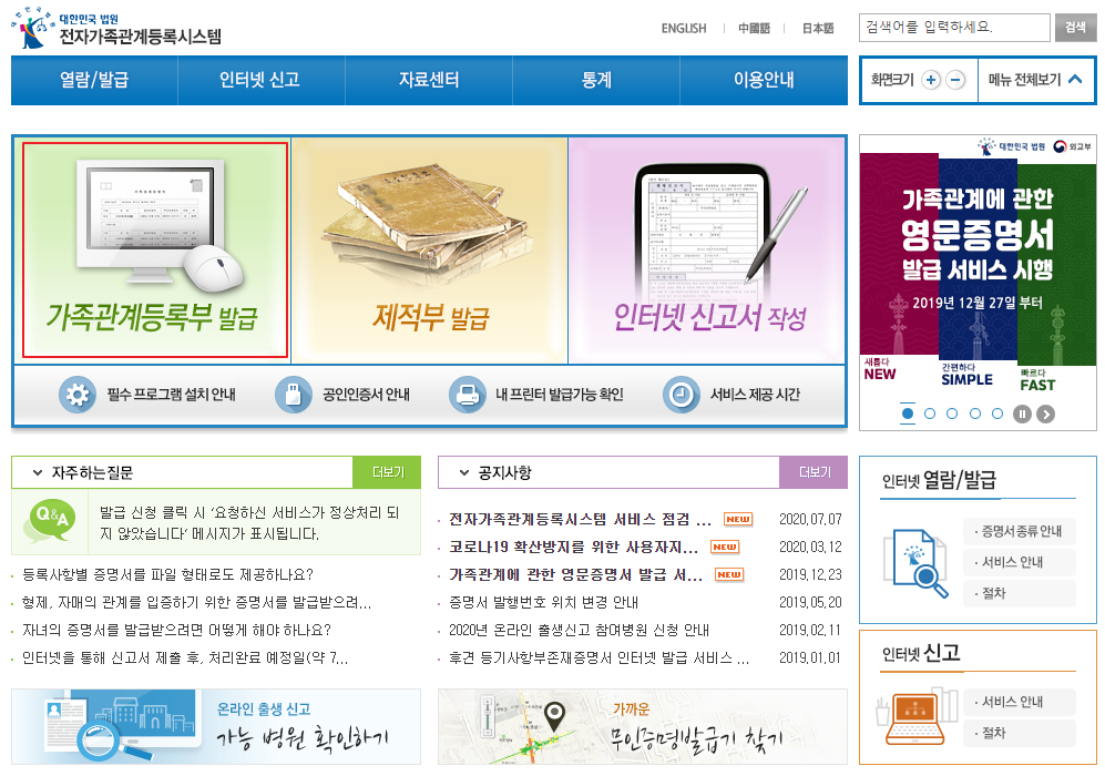 가족관계증명서 인터넷발급하기