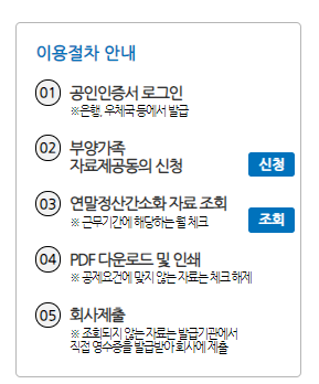 2번의 경우, 부양가족 소득공제 자료제공동의 신청서이며 자료제공자의 개인정보가 필요합니다.