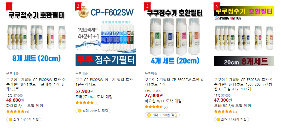 F602SW 엠와이의 호환 필터들은 1년 관리세트가 보통 4만원대로 가격이 형성되어 있어 크게 부담되는 수준은 아니다.