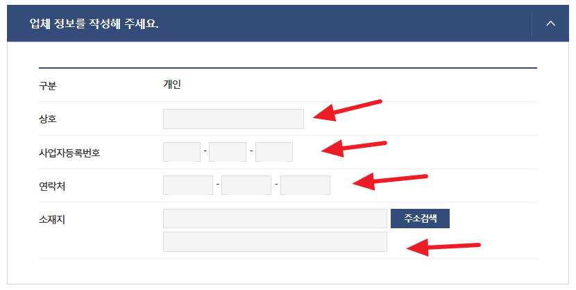 먼저 통신판매업 신고를 하려면 사업자등록이 되어있어야 하기에, 사업자등록증 정보를 바탕으로 상호, 사업자등록번호, 연락처, 소재지 등 업체 정보를 순서대로 작성하겠습니다.