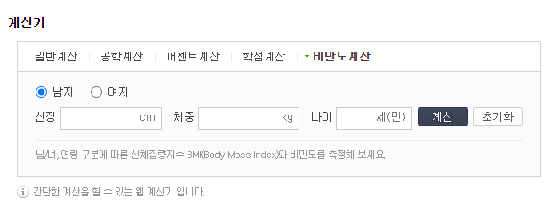 bmi 계산기 : 네이버 통합검색