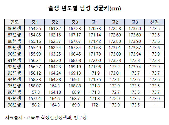 대한민국 평균 키 몸무게 확인하기