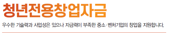- 기업당 1억원 이내의 청년전용 창업자금 지원 (제조업은 2억원 이내)