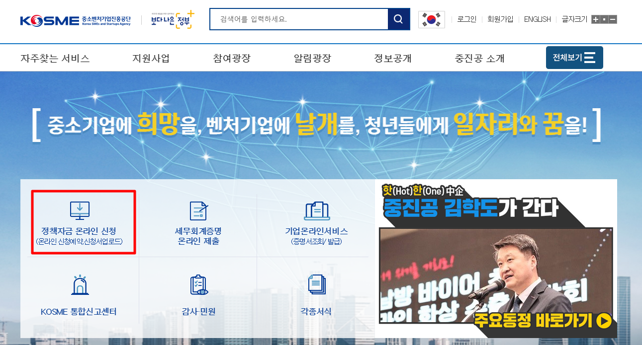 먼저 중소벤처기업진흥공단 공식 홈페이지에 접속합니다.