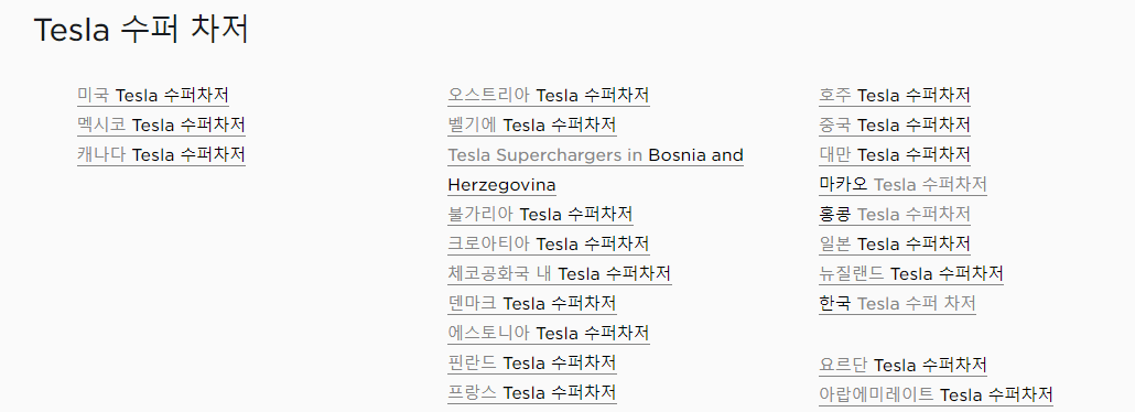 한국의 테슬라 슈퍼차저 리스트는 다음과 같습니다.