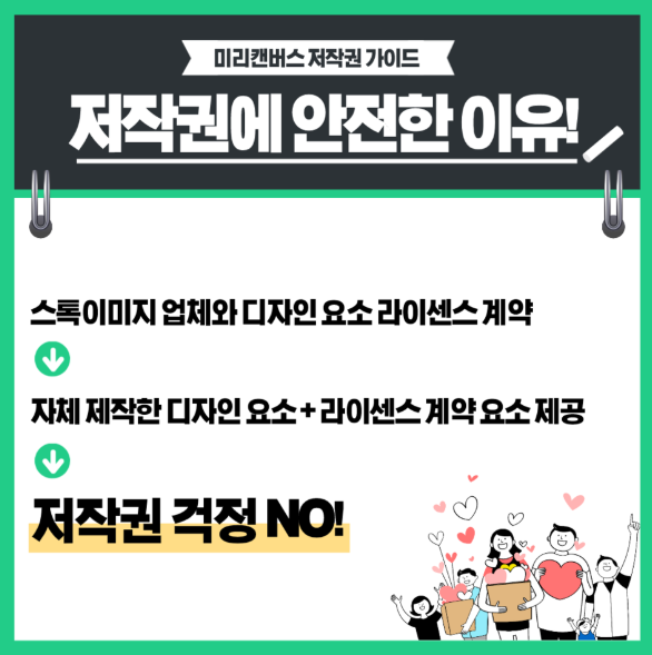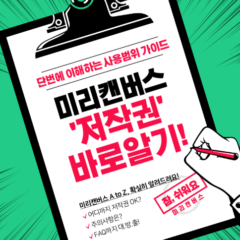 결론부터 말씀드리면, 미리캔버스에서 제공되는 모든 템플릿 디자인들은 '공용 저작물' 이기 때문에 상업적으로든, 비상업적으로든 마음껏 사용이 가능합니다.