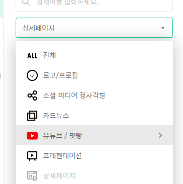 로고디자인, 블로그 썸네일, 카드뉴스, 유튜브 썸네일, 심지어 쇼핑몰 상세페이지까지 엄청나게 많은 템플릿들이 있네요.