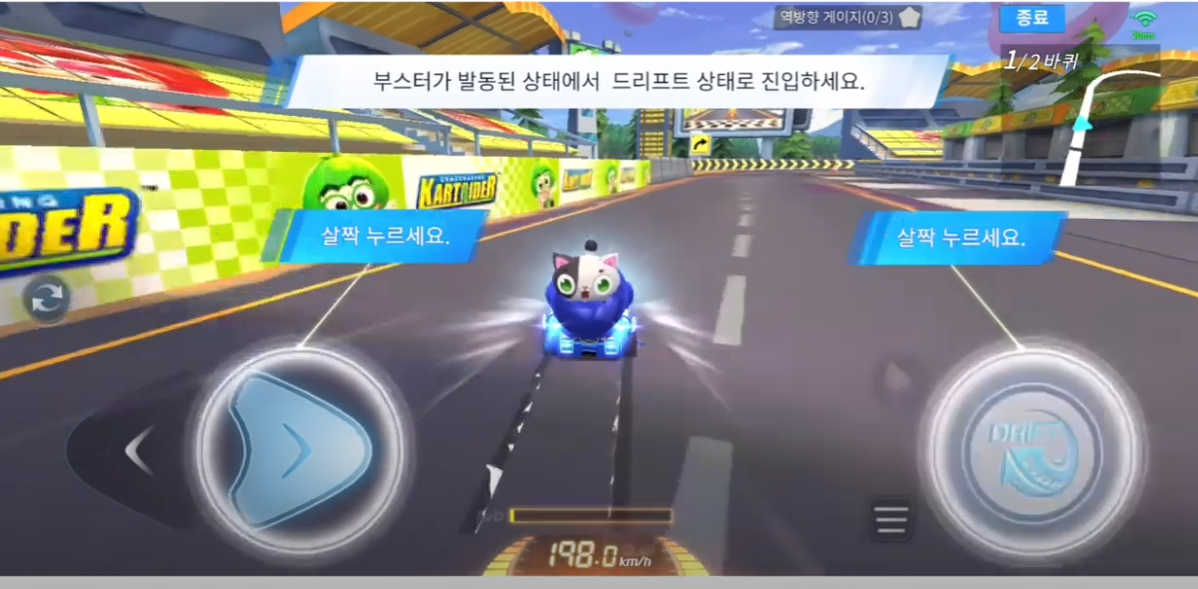 그리고 나서 바로 반대방향으로 크게 드리프트를 하면 되는데 이때 게이지가 쭉쭉 차면서 역방향 게이지가 적용됩니다.