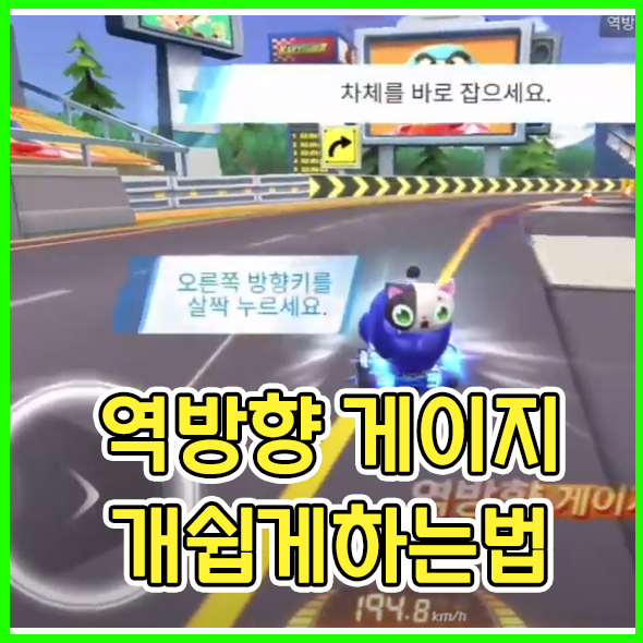 카트라이더 러쉬 플러스를 하다보면 게이지를 대량으로 모아야 무조건 유리한데, 역방향게이지는 빠른 코너링과 순간적으로 대량의 게이지를 모을 수 있어 좋습니다.