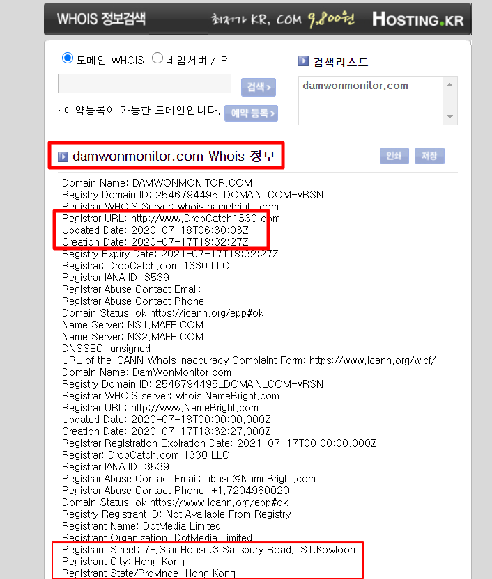 즉, 해킹이나 어떤 공격이 아닌, 정상적으로 만료된 도메인을 홍콩의 한 개인이나 업자가 구입해서 사용하고 있었던 것.