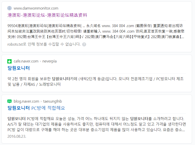 아무튼, 담원 모니터 사이트에 중국어와 불법도박 이미지로 도배되어있는 이유는 홍콩사람이 해당 도메인을 구입하였기 때문이니, 더이상 어떠한 선동에도 휘말리지 말도록 하자.